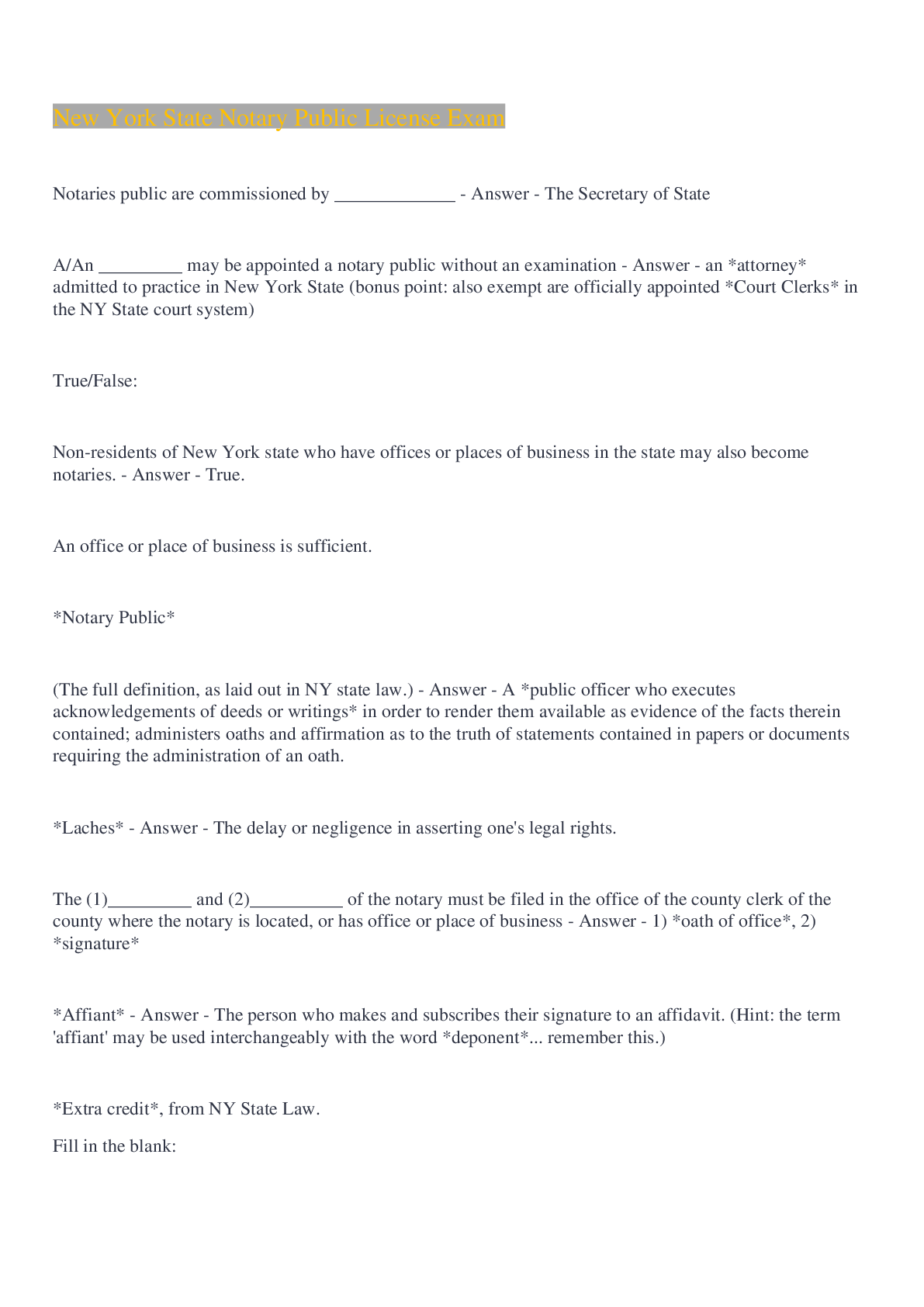 Commerce > EXAM > NYS Notary Public Study Guide Questions With Answers 2022 (All)
