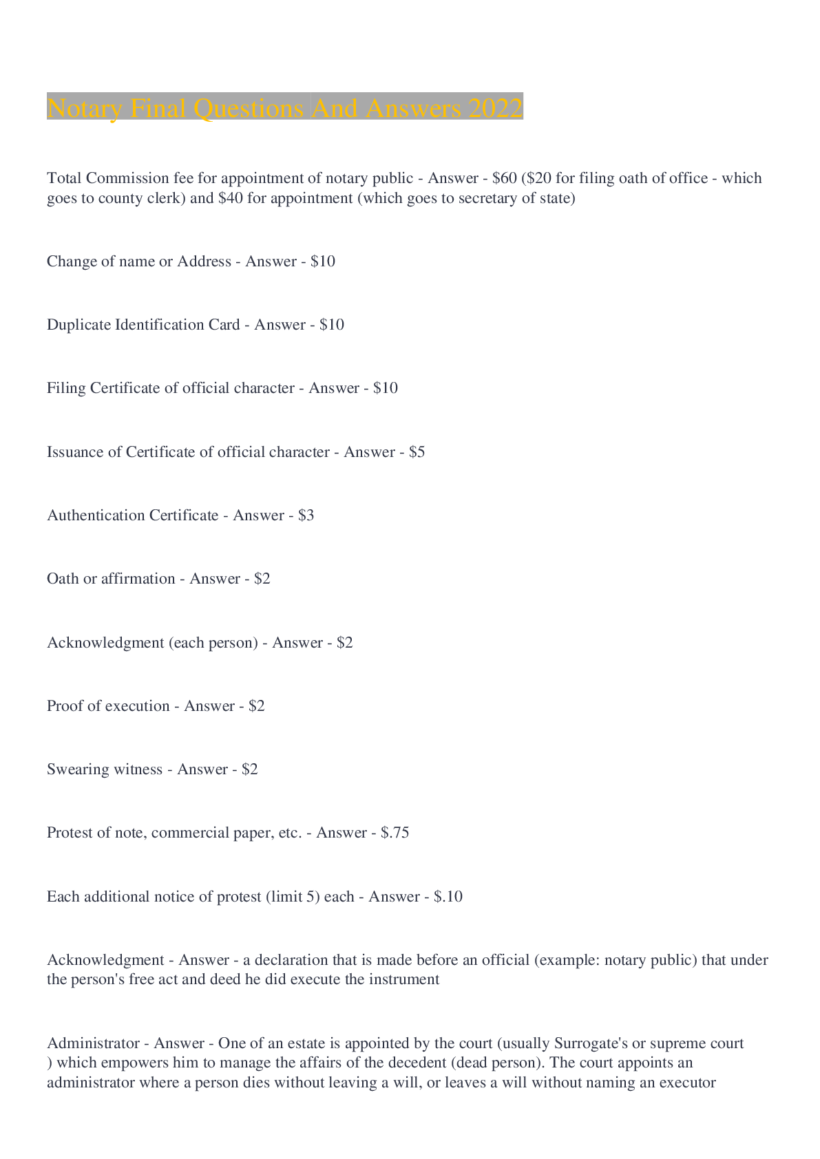 Commerce > EXAM > Notary Final Questions And Answers 2022 (All)