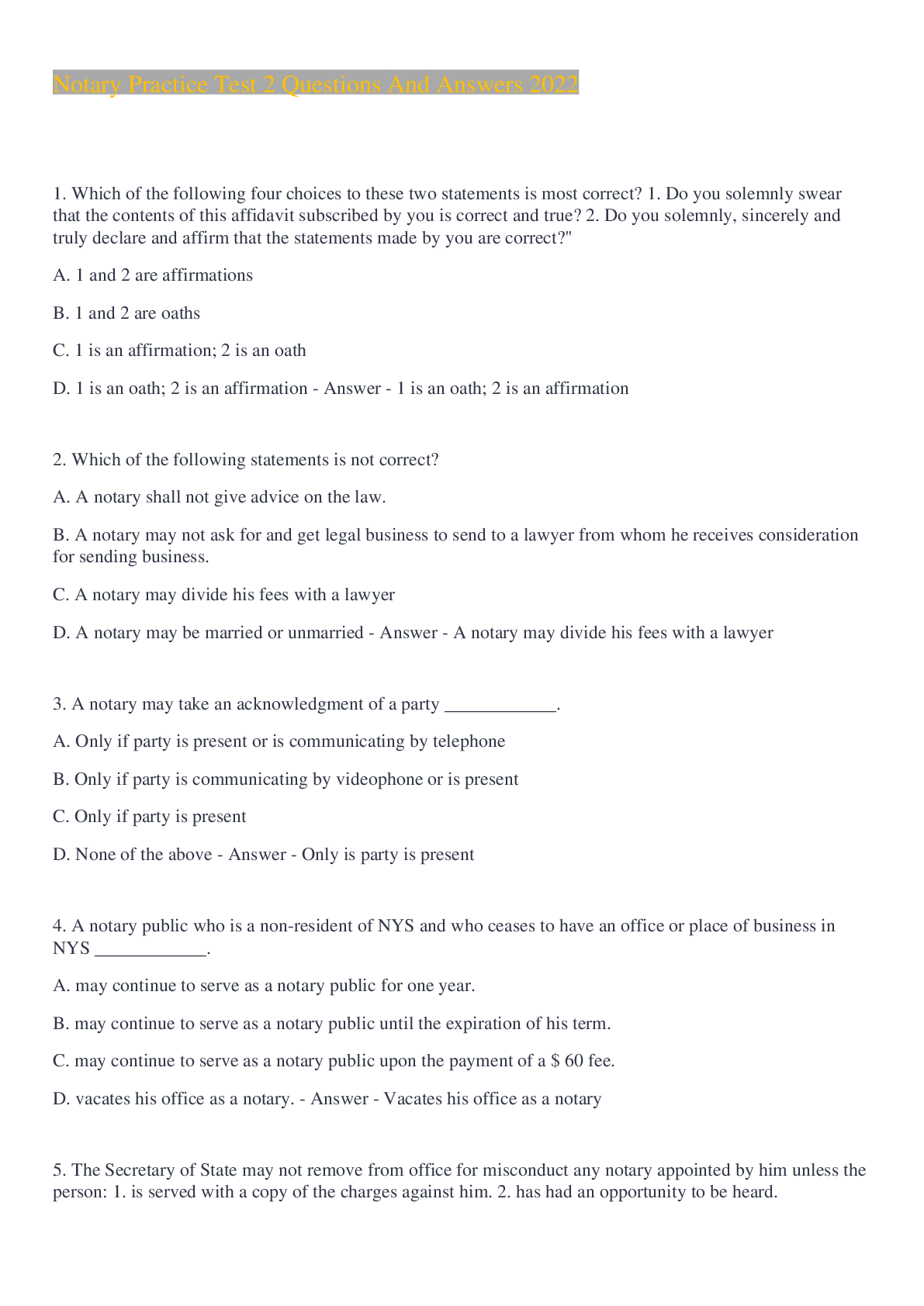 Commerce > EXAM > Notary Practice Test 2 Questions And Answers 2022 (All)