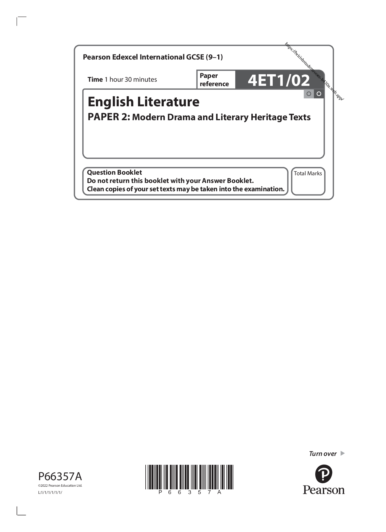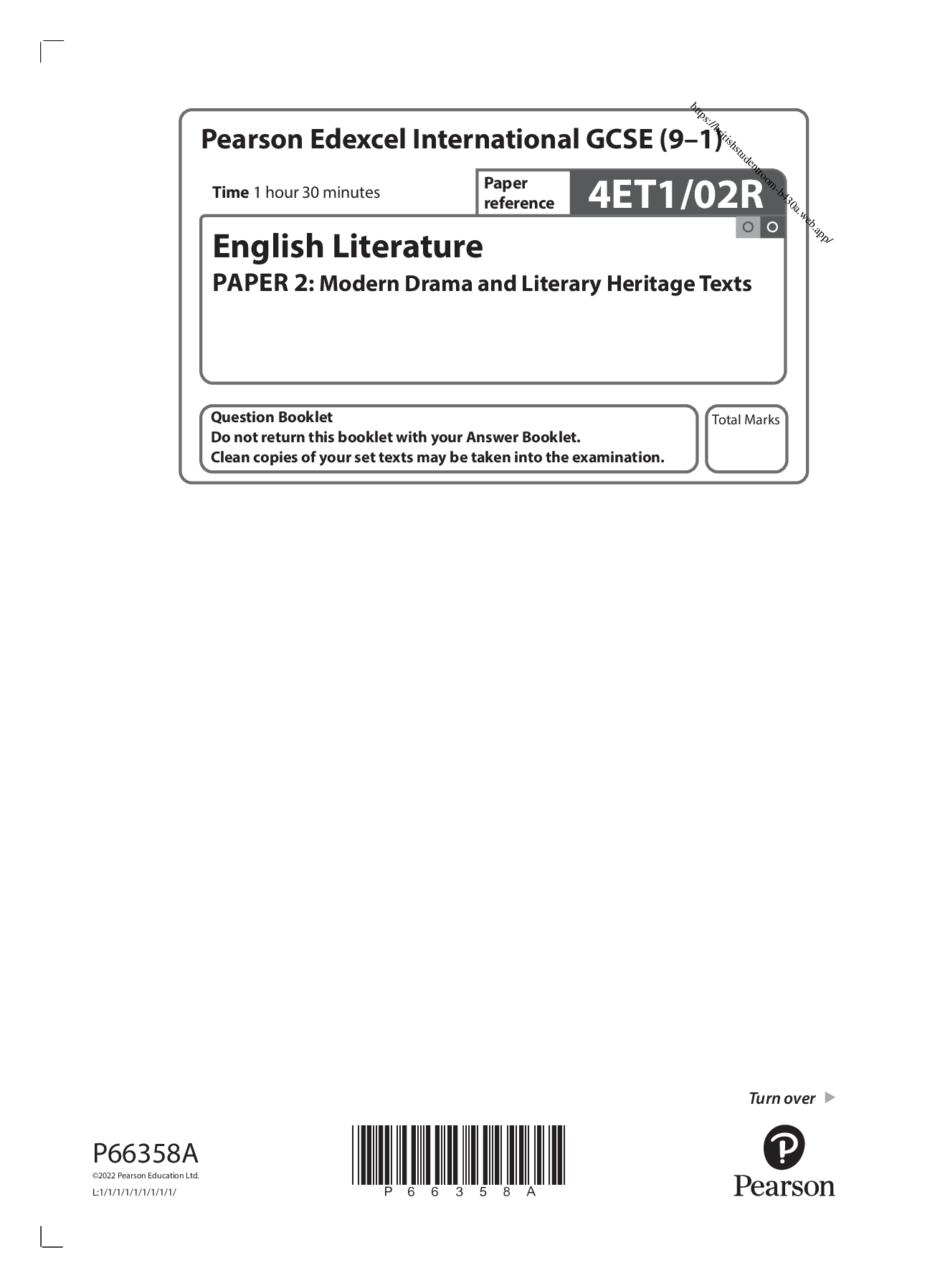 English Literature > QUESTION PAPER (QP) > Pearson Edexcel International GCSE (9–1) 4ET1/02 English Literature PAPER 2: Modern Drama and Literary Heritage Texts QUESTION PAPER. January 2022. (All)