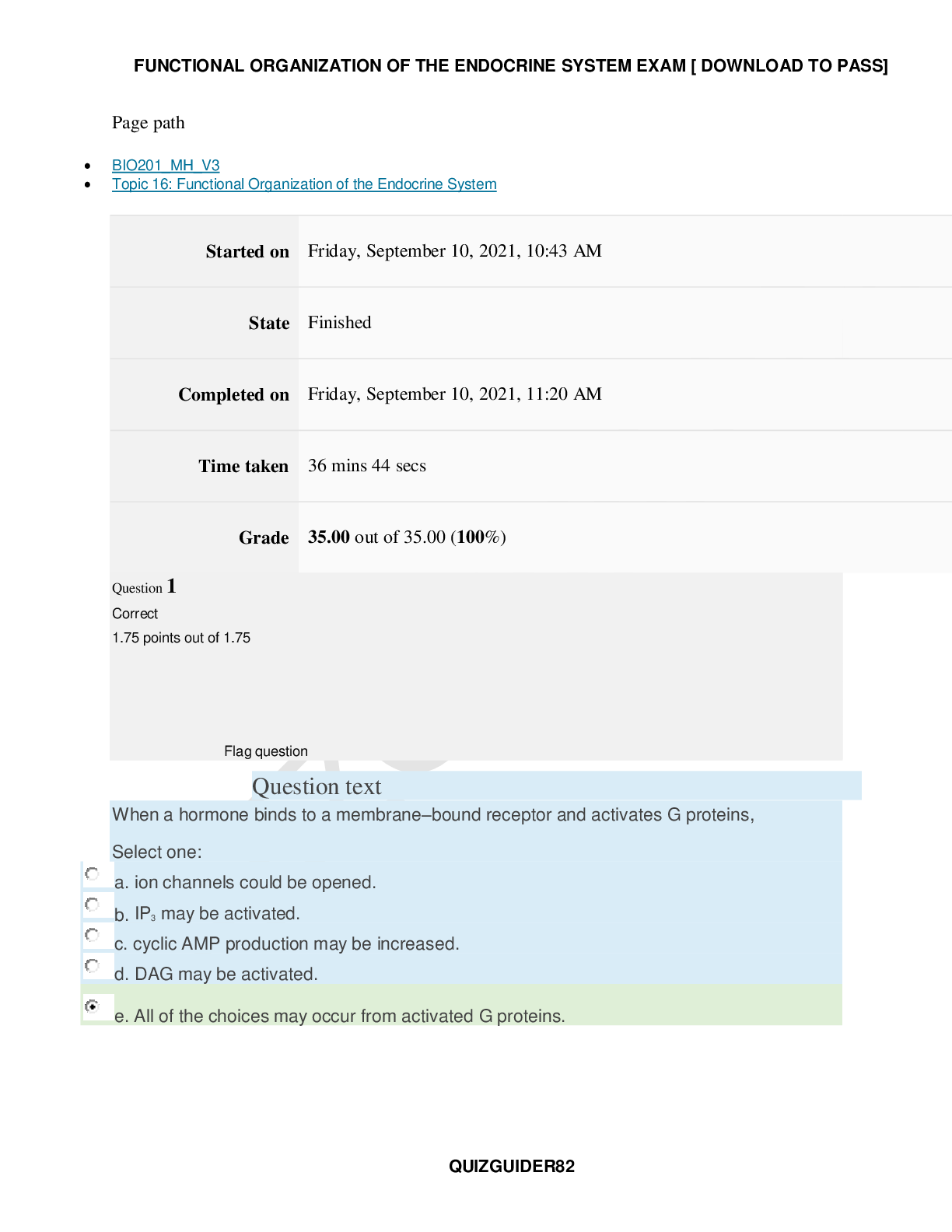 Anatomy and Physiology - A&P 1 > QUESTIONS & ANSWERS > Topic 16 Functional Organization of the Endocrine System[ GRADED A+] (All)