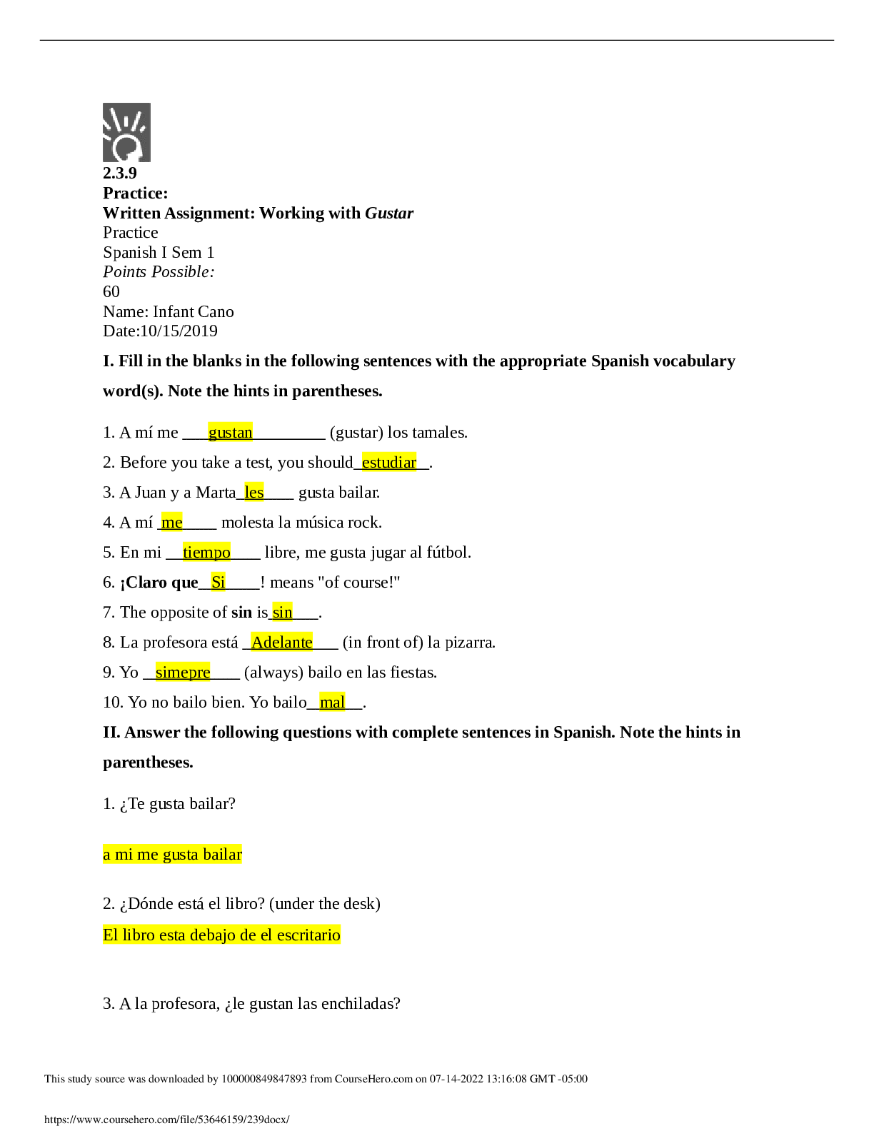 Here are the best study resources to pass Spanish. Find Spanish study guides, notes, assignments, and much more.