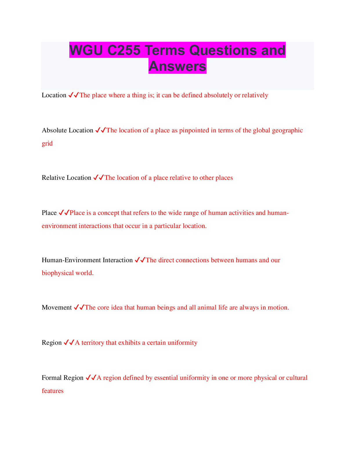Geography > QUESTIONS & ANSWERS > WGU C255 Terms Questions and Answers (All)