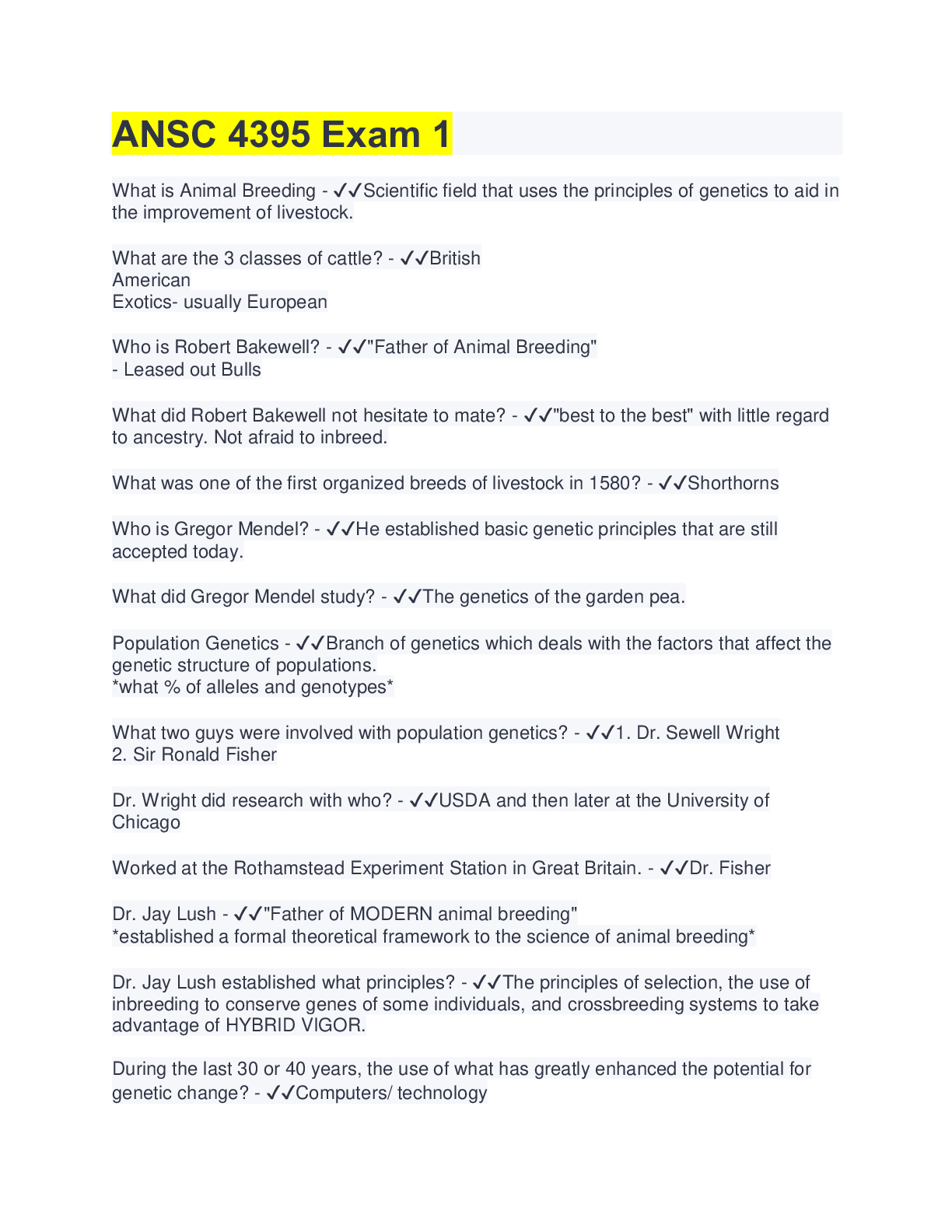 Animal Management > EXAM REVIEW > ANSC 1401 animal science exam questions and answers (All)