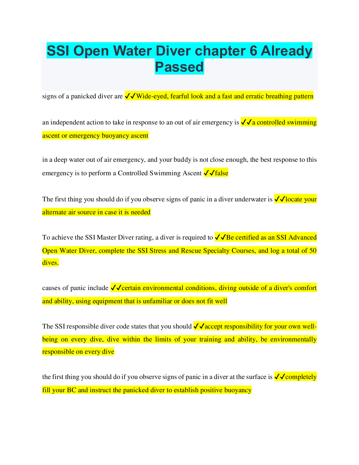 Driving Course > EXAM > SSI Open Water Diver - Section 6 Already Passed (All)