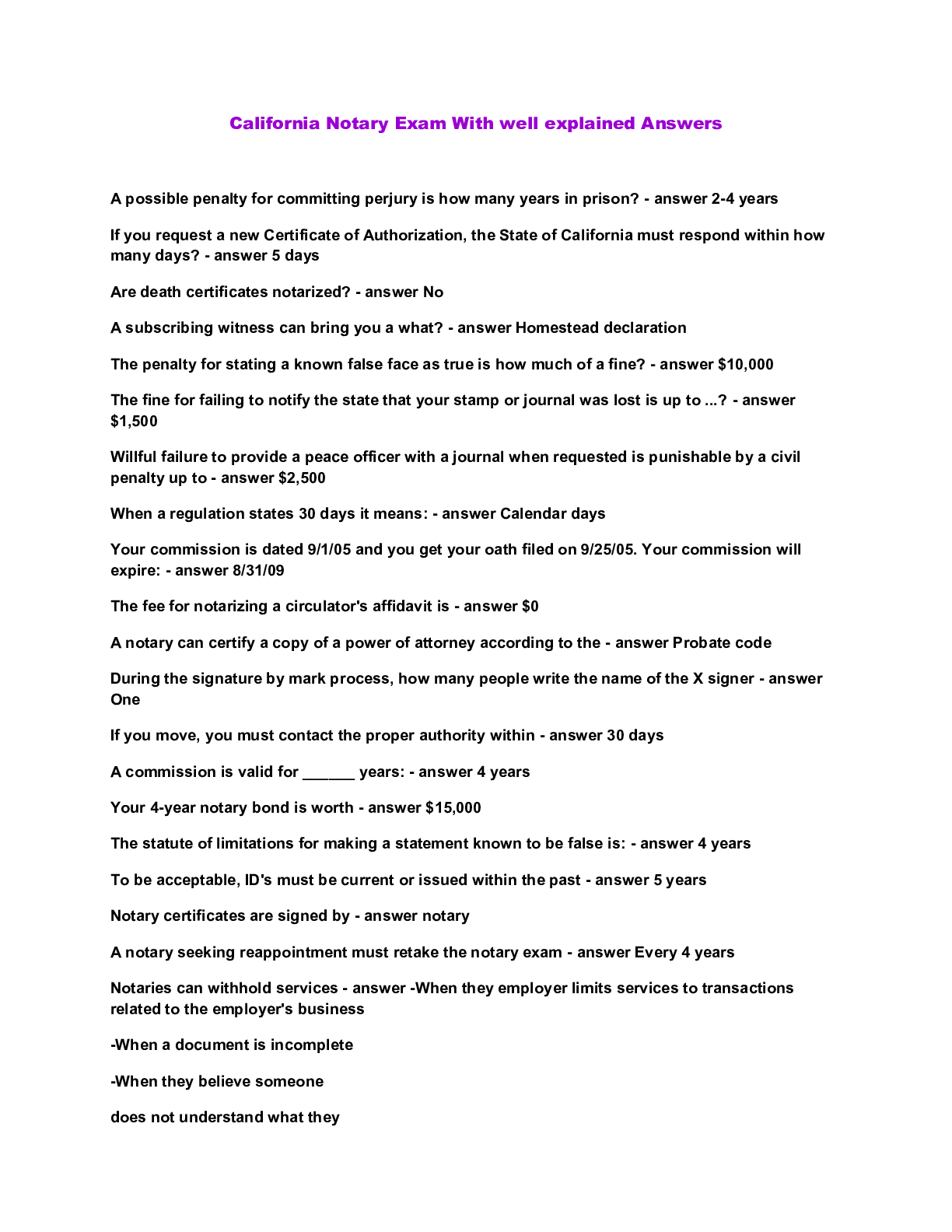 Business Ethics > QUESTIONS & ANSWERS > California Notary Exam With well explained Answers (All)