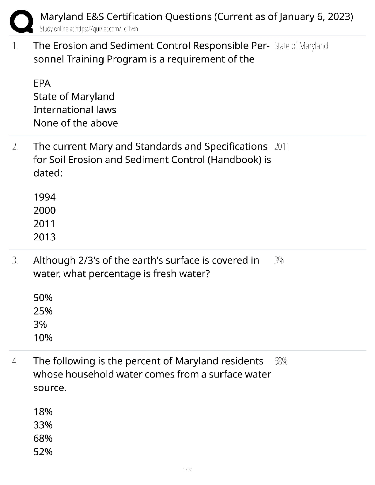 Business Ethics > QUESTIONS & ANSWERS > Maryland E&S Certification Questions Test Bank / Ethics & Safety Exam / 2025 Update / Score 100% (All)