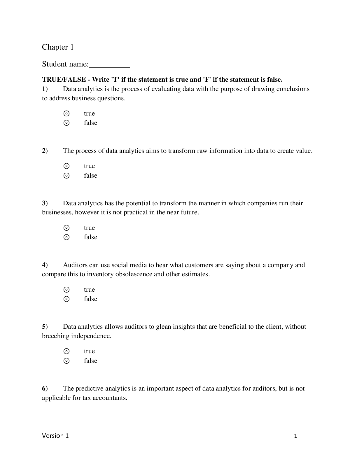 DATA ANALYSIS > TEST BANKS > TEST BANK for Introduction to Data Analytics for Accounting 1st Edition by Richardson, Terrell & Teeter | Complete 11 Chapters (All)