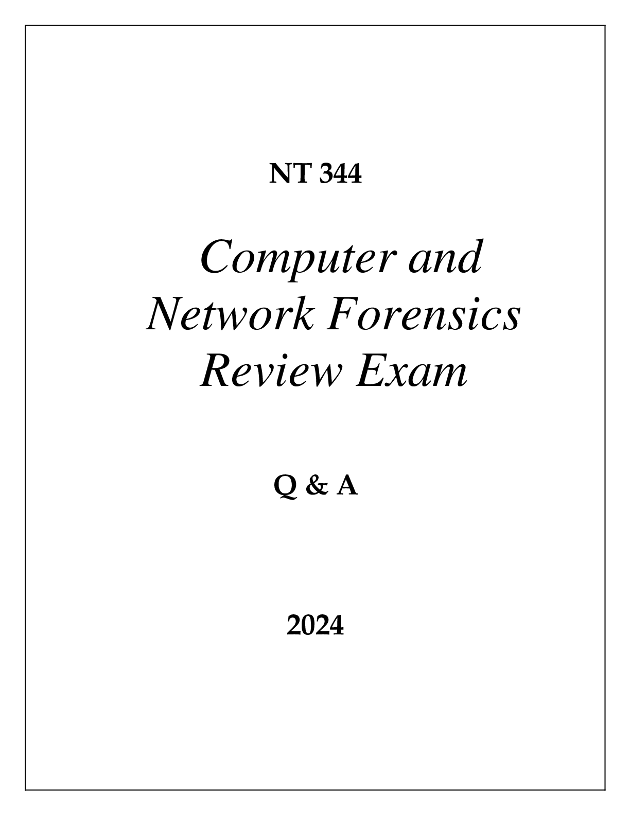 Law > EXAM > NT 344 COMPUTER AND NETWORK FORENSICS REVIEW EXAM Q & A 2024 (All)