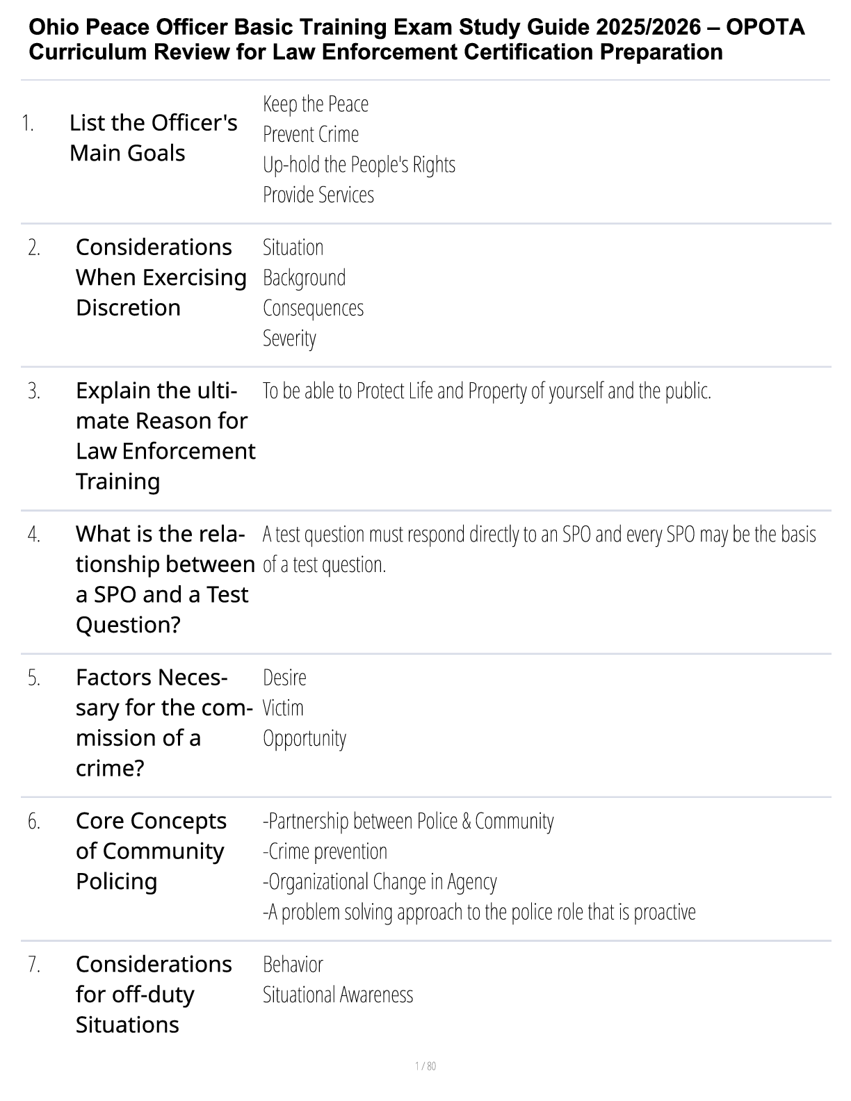 Law > STUDY GUIDE > Ohio Peace Officer Basic Training Exam Study Guide 2025/2026 – OPOTA Curriculum Review for Law Enforcement Certification Preparation (All)