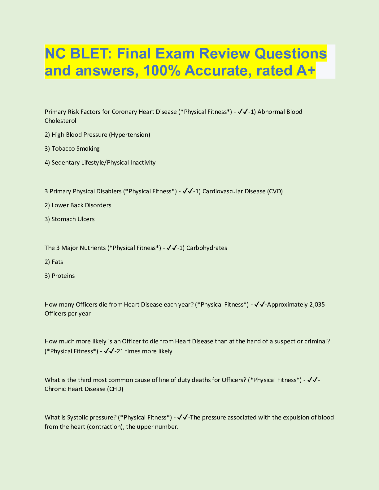 Law > QUESTIONS & ANSWERS > NC BLET: Final Exam Review Questions and answers, 100% Accurate, rated A+ (All)