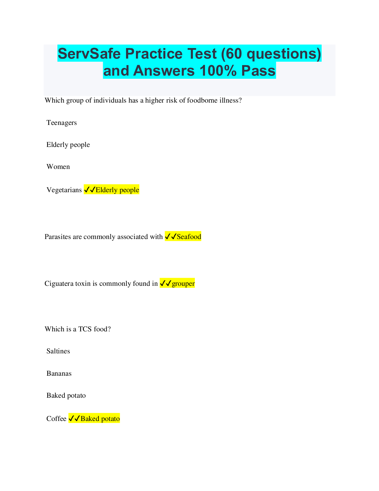 Safety Management > EXAM > ServSafe Practice Test (60 questions) and Answers 100% Pass (All)