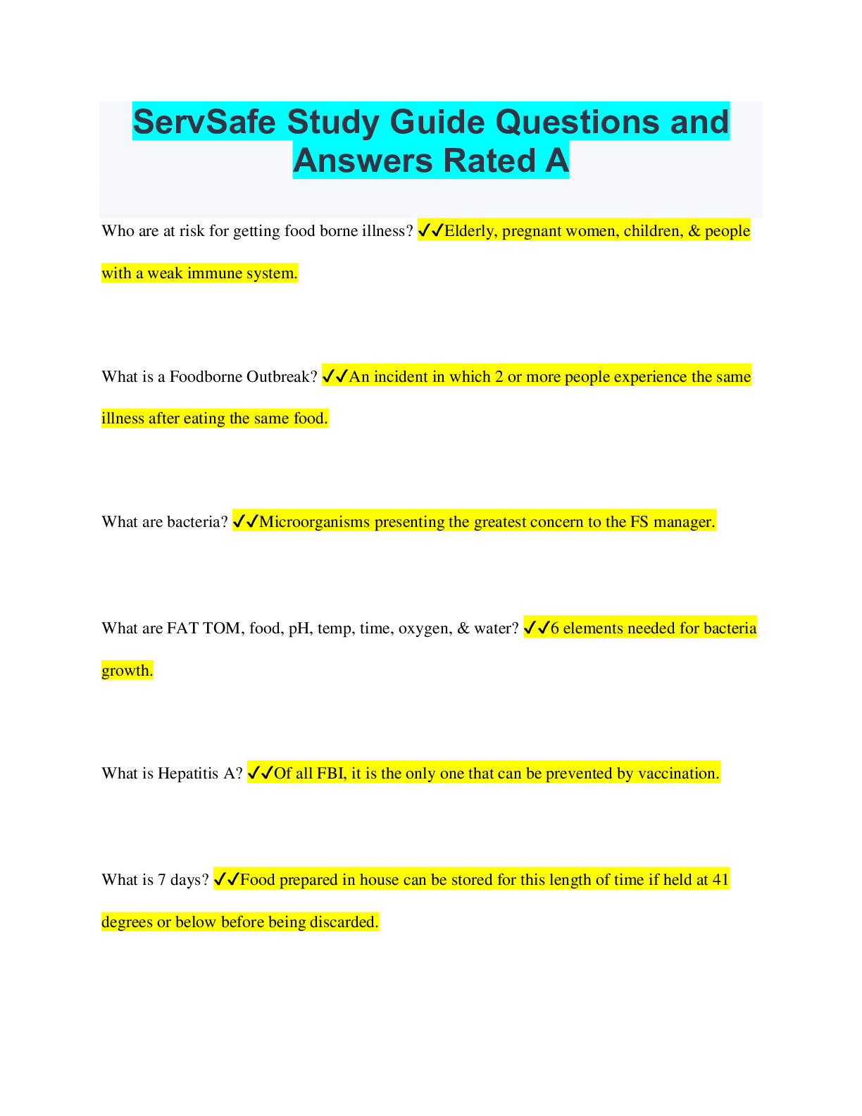 Safety Management > EXAM > ServSafe Study Guide Questions and Answers Rated A (All)