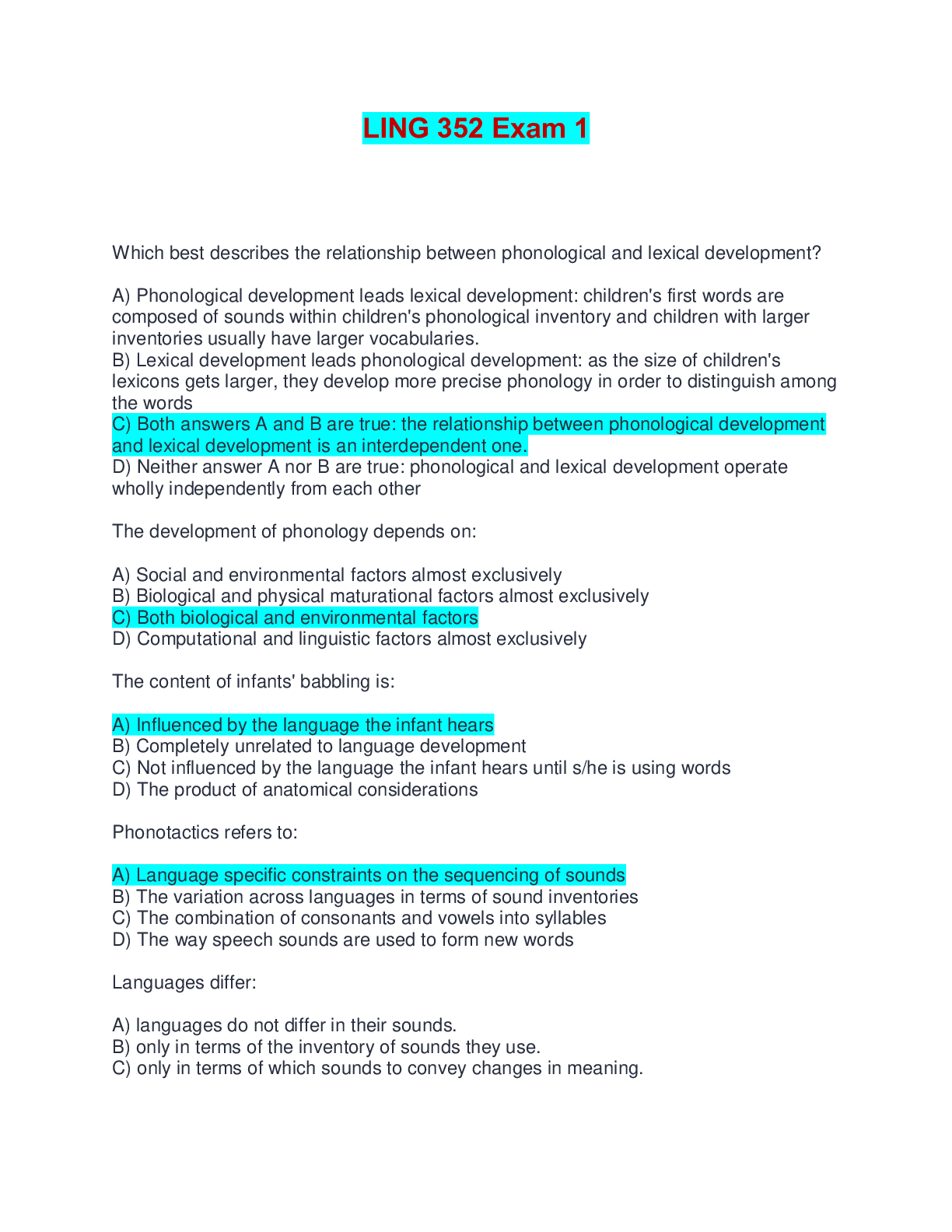 Linguistics > EXAM > LING 352 Exam 1 | Questions and Answers (Complete Solutions) (All)