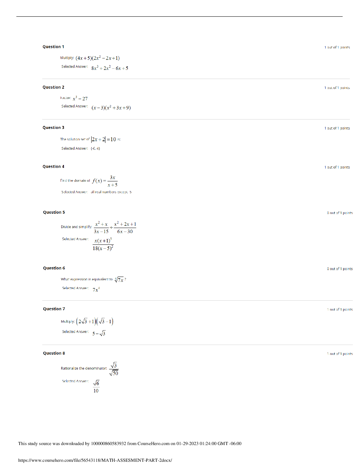 Mathematics > EXAM > CLST 103 Liberty University Math Assessment - Part 2. (All)