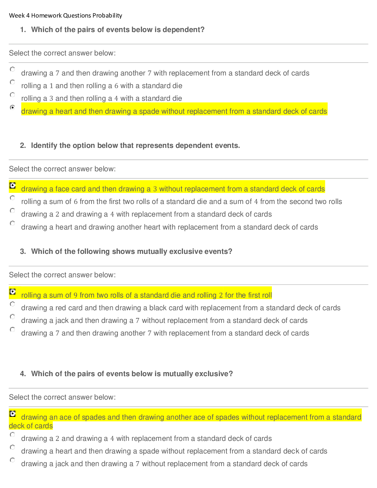 Mathematics > QUESTIONS & ANSWERS > MATH 225N Week 4 Probability Questions and answers(All Correct Answers) (All)