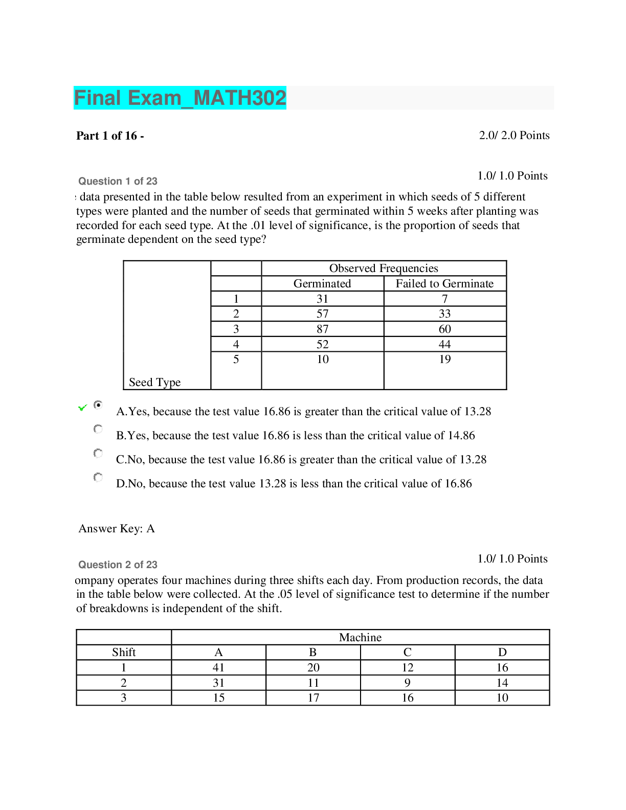 Mathematics > EXAM > MATH 302 Final Exam 1 - Question and Answers (2020/2021) (All)