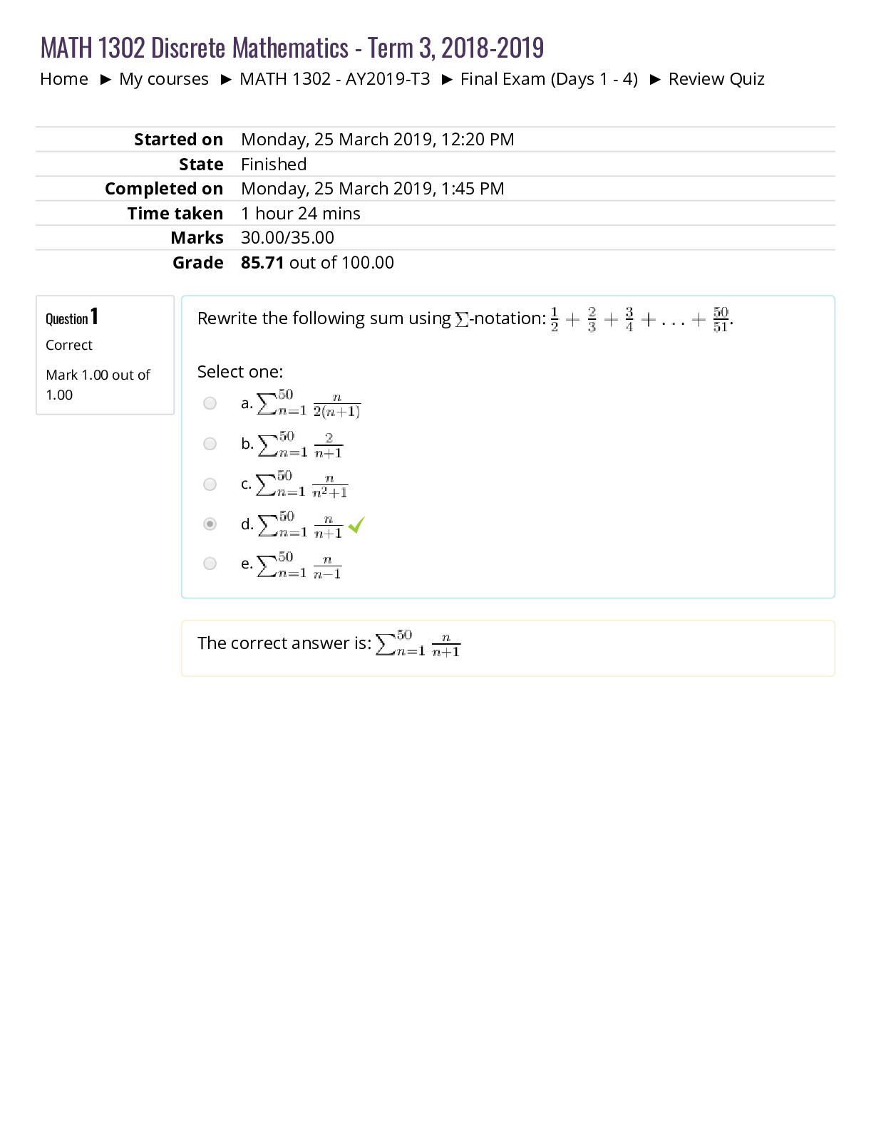 Mathematics > QUESTIONS & ANSWERS > Strayer University, Washington - MATH 104Quiz 1 math 104. (All)