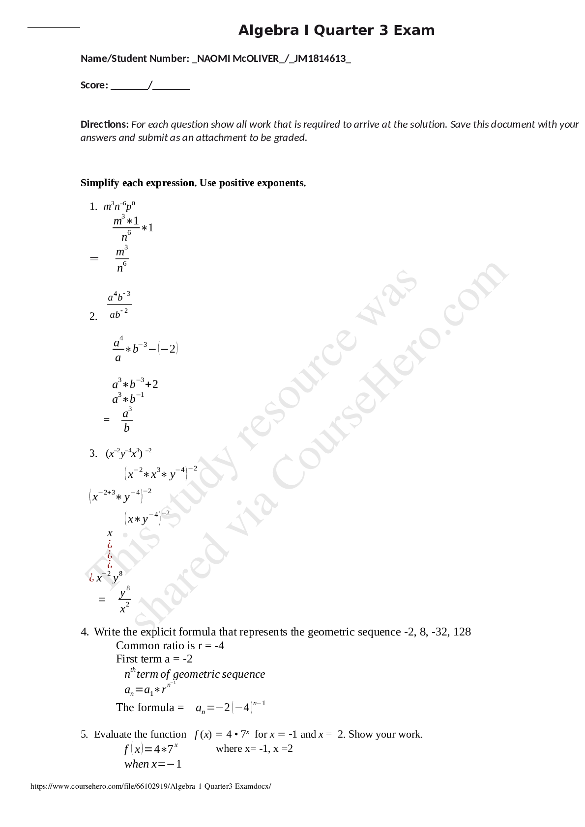 Mathematics > STUDY GUIDE > Jeannine’s Math Packet (REVISED) with answer key 100%-A Grade (All)