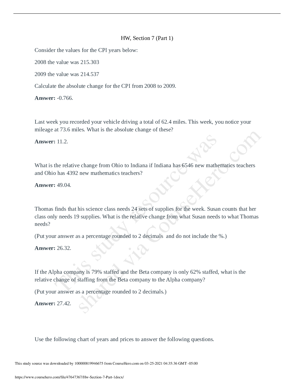 Mathematics > QUESTIONS & ANSWERS > Ivy Tech Community College, Northcentral - MATH 123SOLUTIONS MATH 123 Homework Section 24 Percent Change(2) EXCELLENT SOLUTIONS (All)
