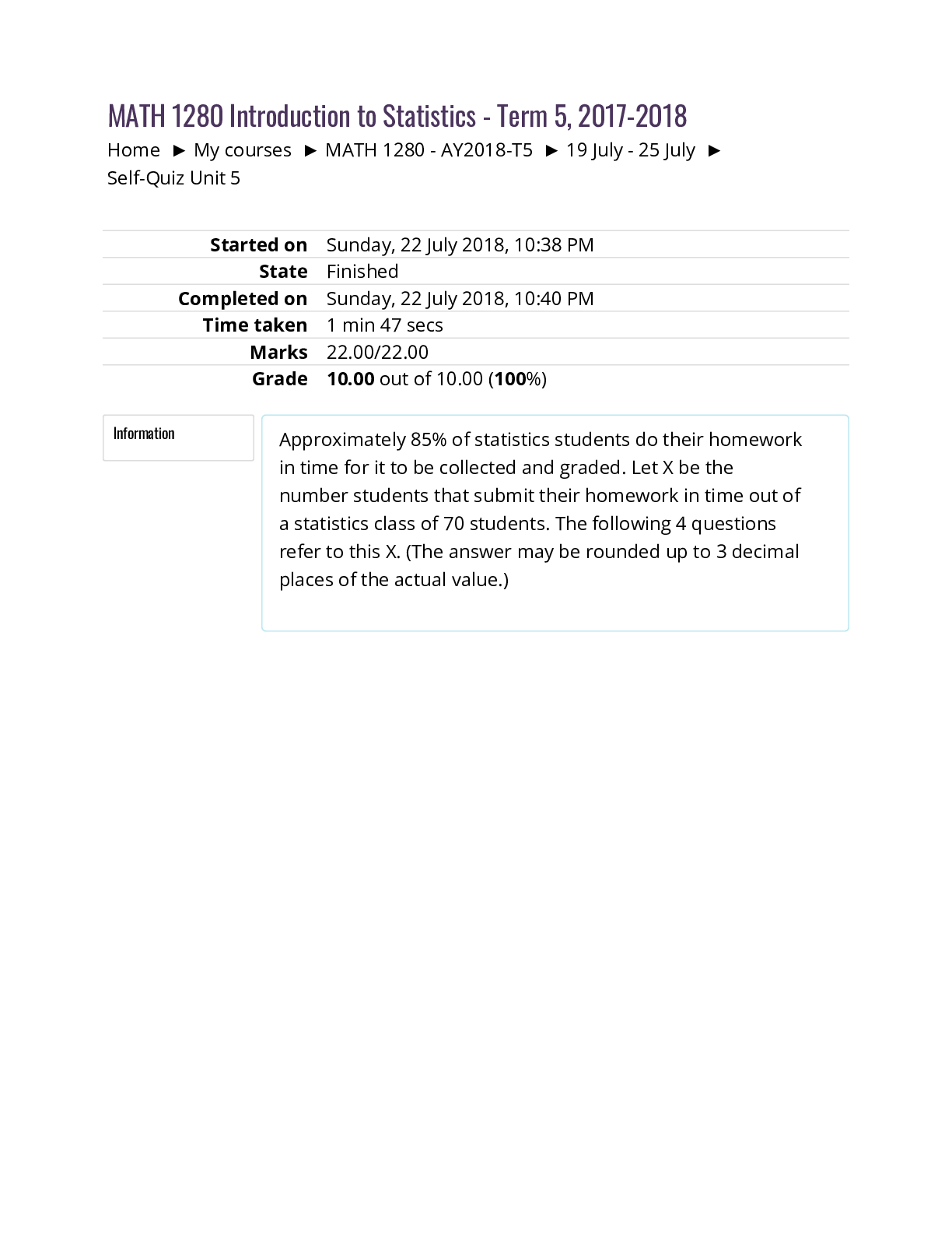Mathematics > QUESTIONS & ANSWERS > University of the People MATH 1280Unit 5 Self-Quiz. (All)