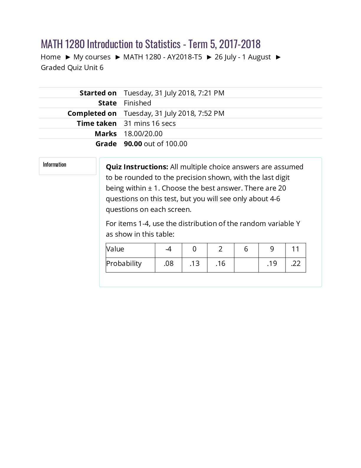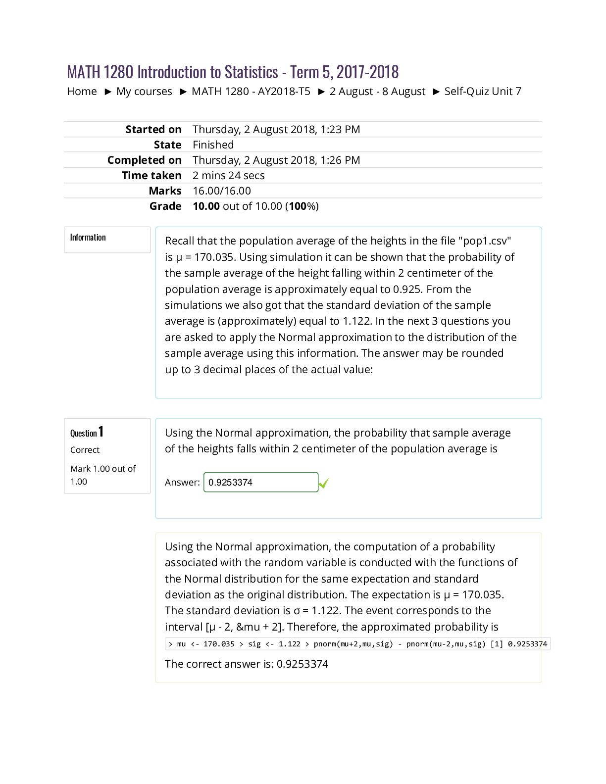 Mathematics > QUESTIONS & ANSWERS > University of the People MATH 1280Unit 6 Self-Quiz (All)