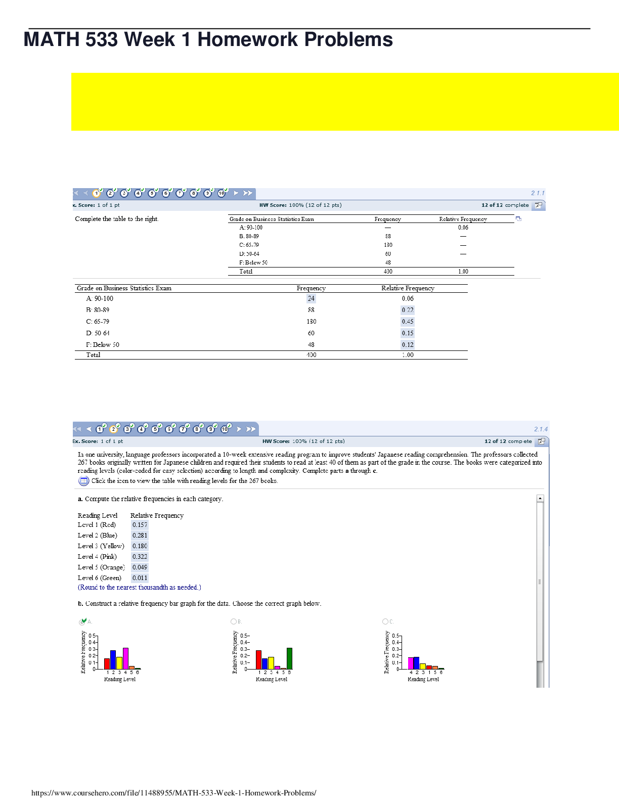 Mathematics > EXAM > MATH 533 Week 1 Homework Problems (GRADED A) Questions and Answer Solution | Download To Score An A (All)