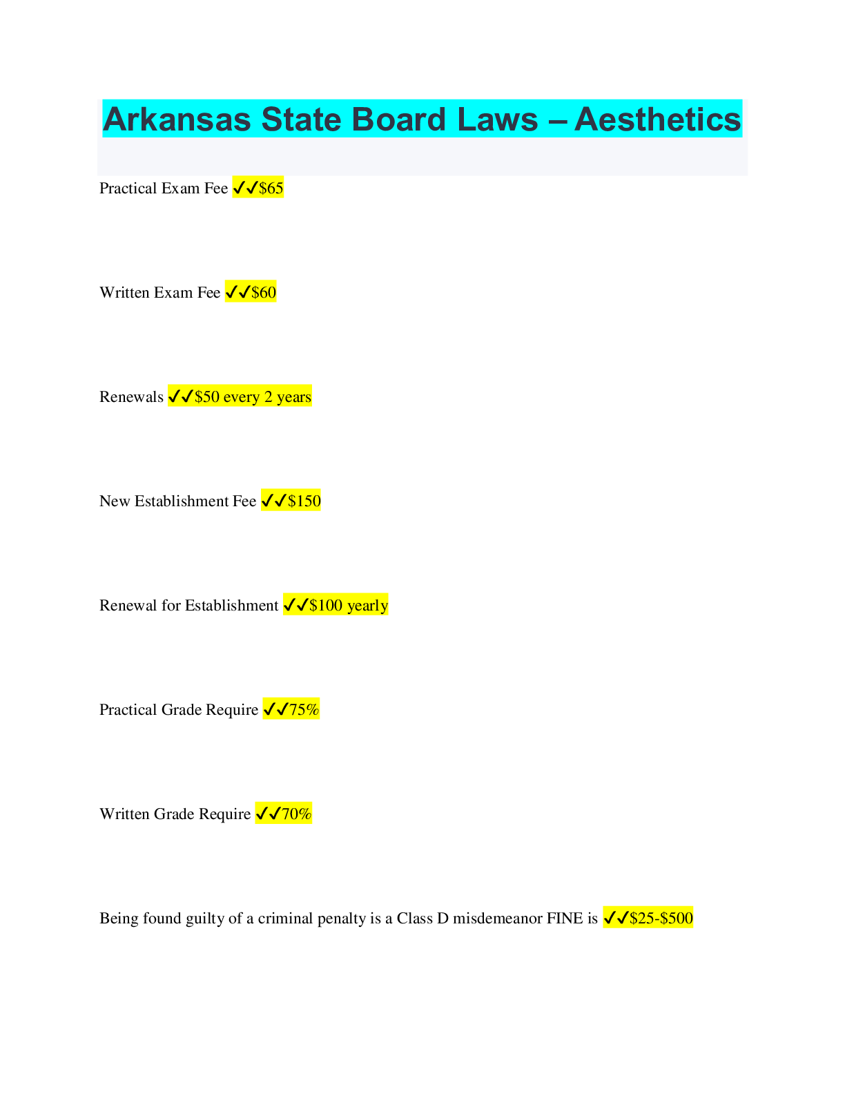 Philosophy > QUESTIONS & ANSWERS > Arkansas State Board Laws – Aesthetics (All)