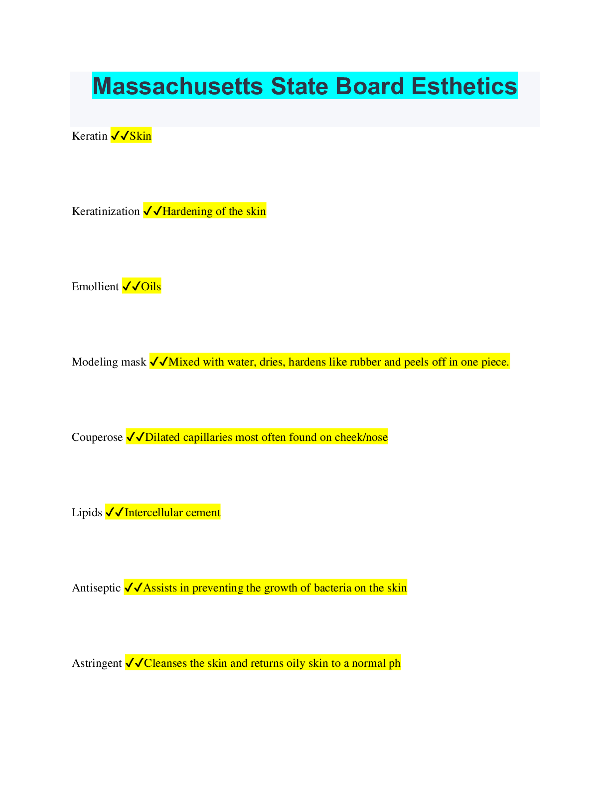 Philosophy > QUESTIONS & ANSWERS > Massachusetts State Board Esthetics (All)