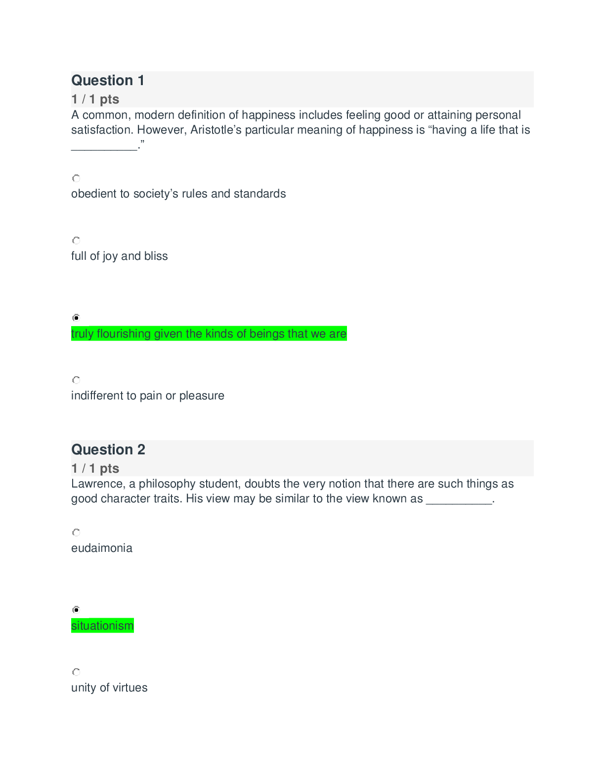 Philosophy > QUESTIONS & ANSWERS > PHI_103 Week 4 Quiz -Questions with Answers (All)