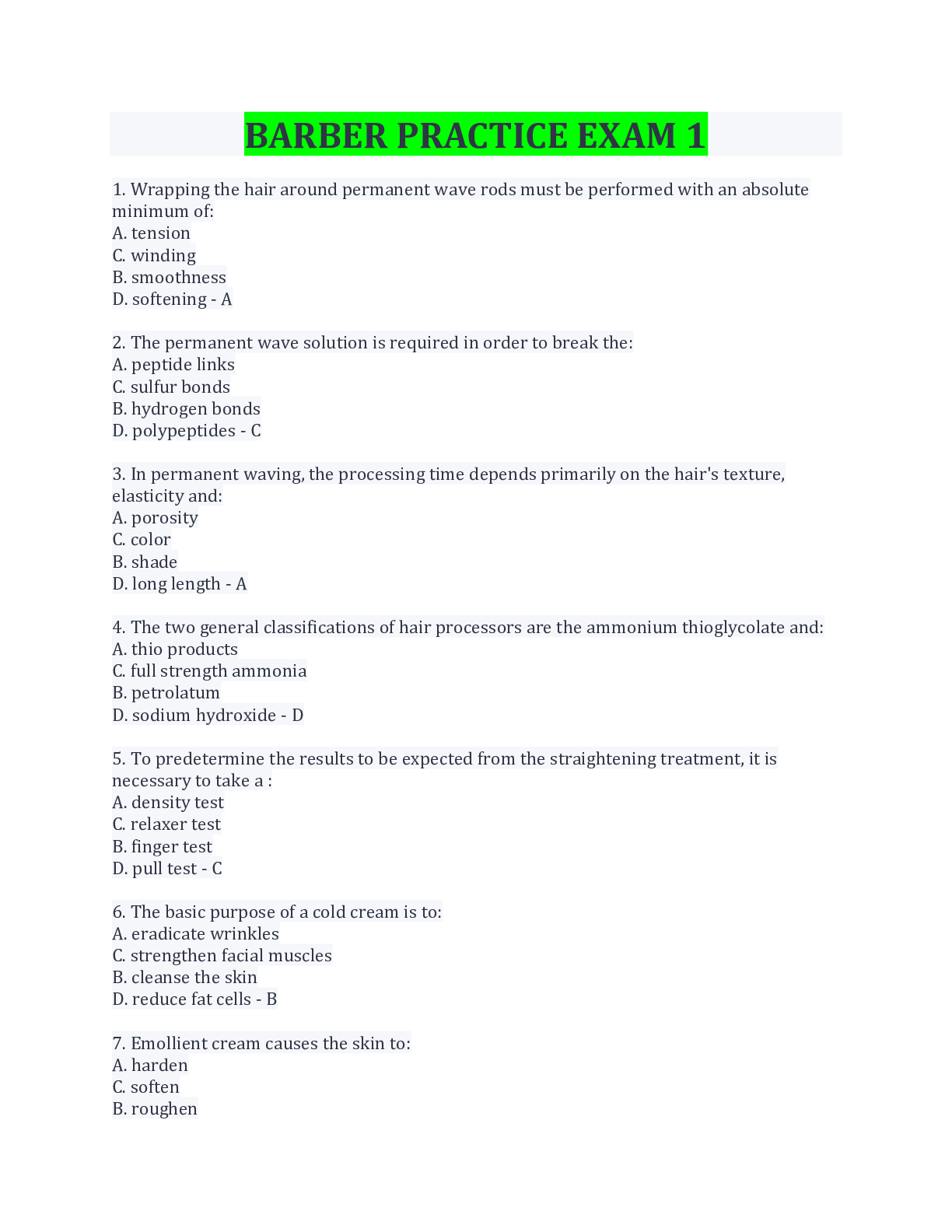 Philosophy > EXAM > BARBER PRACTICE EXAM 1 QUESTIONS AND ANSWERS MULTIPLE CHOICE (All)