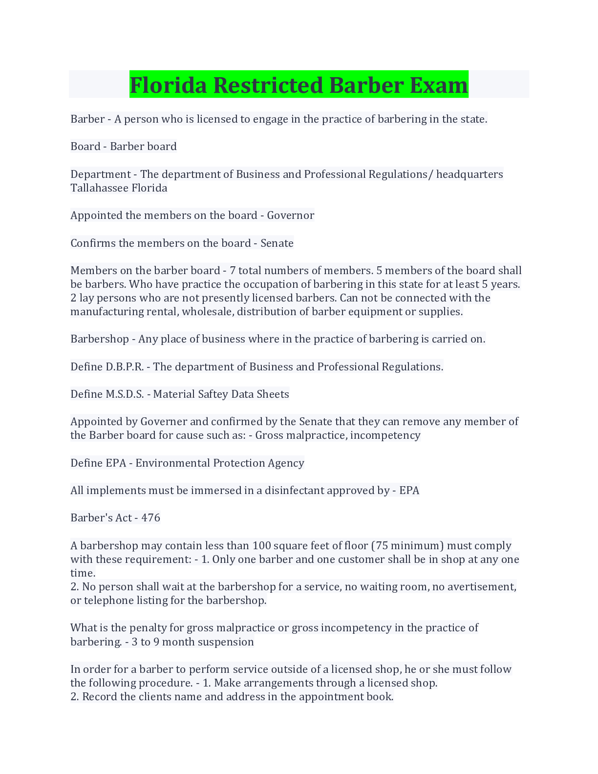 Philosophy > EXAM > Florida Restricted Barber Exam Terms And Explanations/ Download (All)