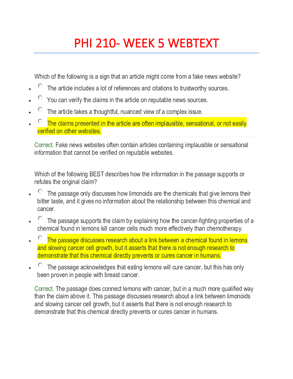 Philosophy > EXAM > PHI 210- WEEK 5 WEBTEXT. All Answers Explained. For 100% Score. (All)