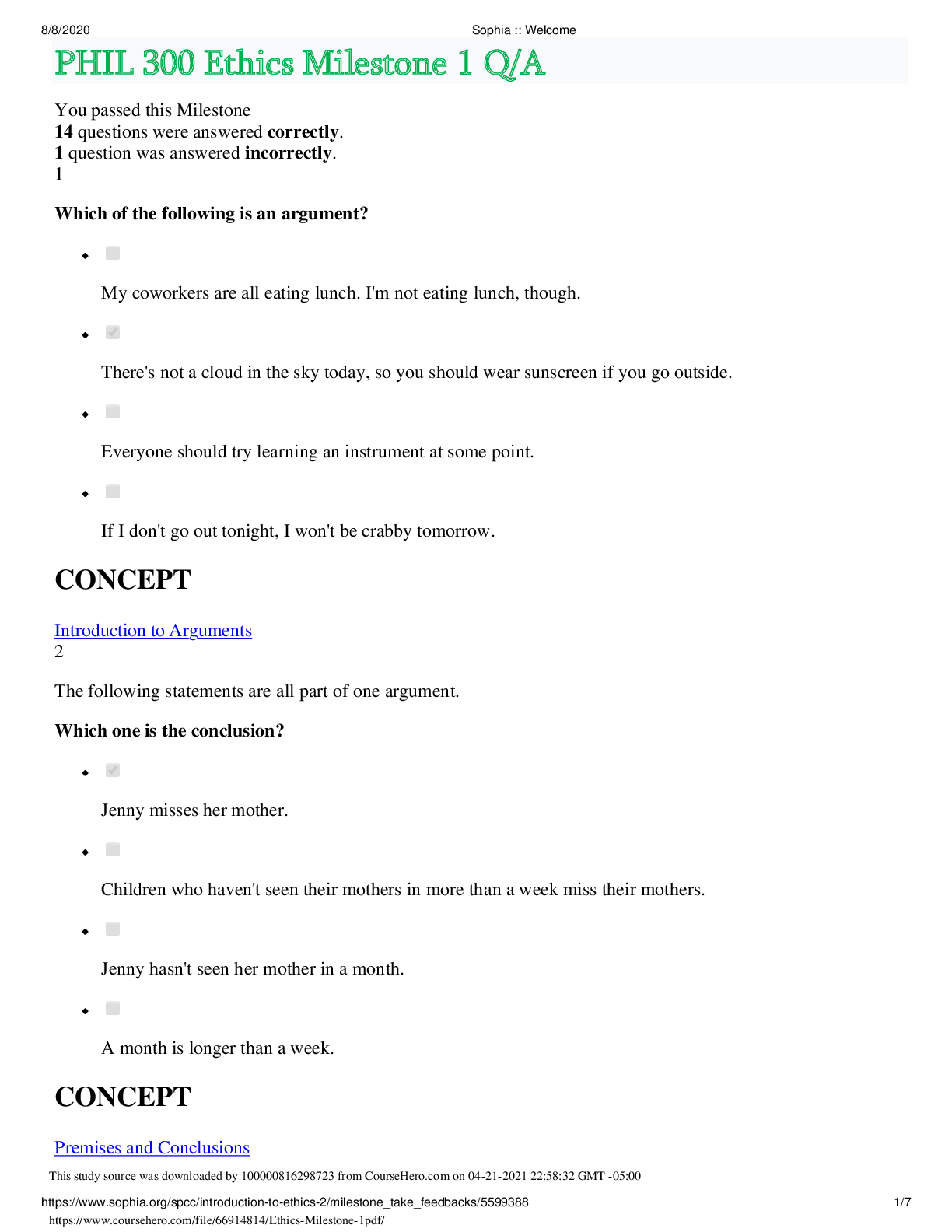 Philosophy > EXAM > SOPHIA ETHICS Unit 2 Milestone 2 Quiz And Answers (Updated ) (All)