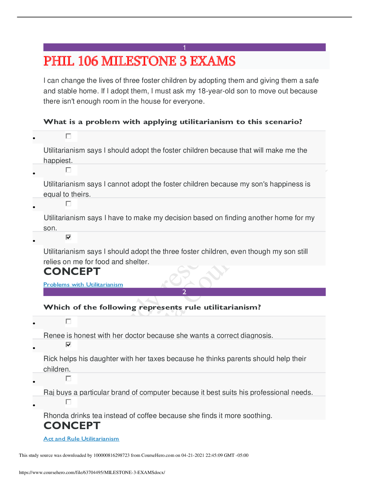 Philosophy > EXAM > PHIL 106 MILESTONE 3 EXAMS Q&A (Verified Update) (All)