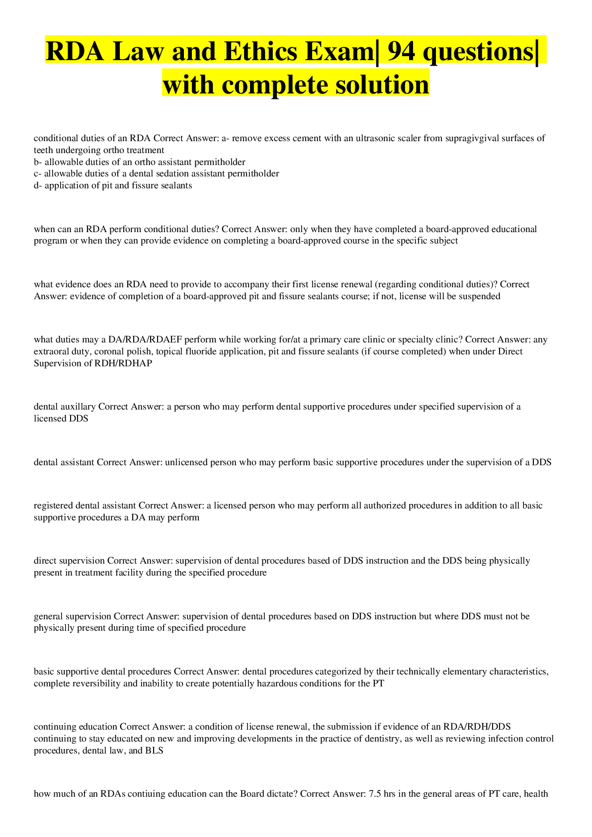 Philosophy > EXAM > RDA Law and Ethics Exam Questions And Answers 2022 (All)
