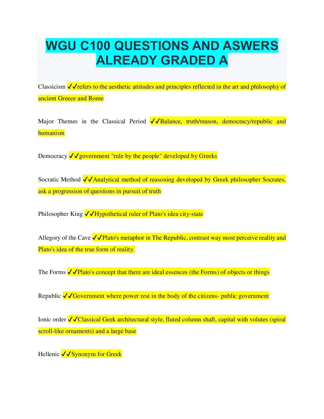 Philosophy > QUESTIONS & ANSWERS > WGU C100 QUESTIONS AND ASWERS ALREADY GRADED A (All)