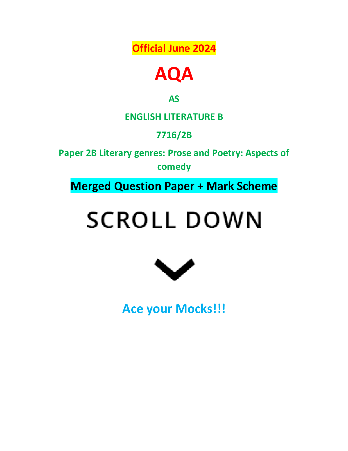 AQA > AQA > Official June 2024 AQA AS ENGLISH LITERATURE B 7716/2B Paper 2B Literary genres: Prose and Poetry: Aspects of comedy Merged Question Paper + Mark Scheme (All)