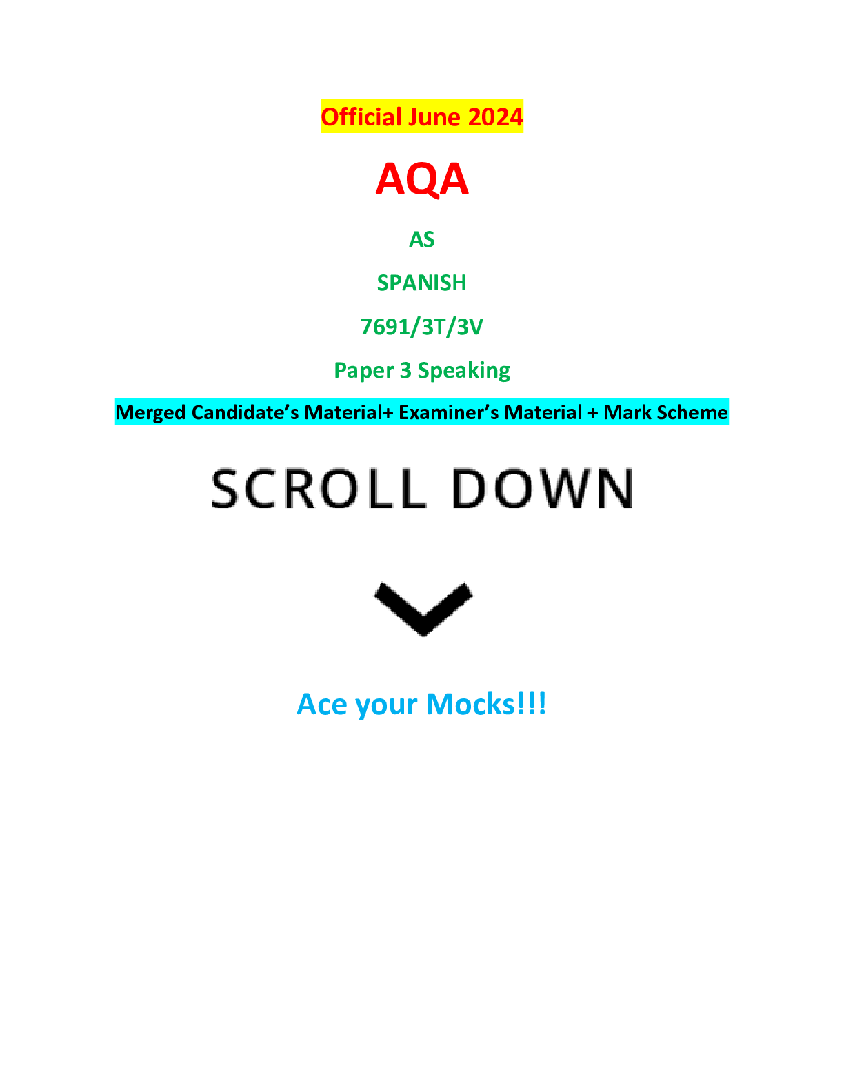 AQA > AQA > Official June 2024 AQA AS SPANISH 7691/3T/3V Paper 3 Speaking Merged Candidate’s Material+ Examiner’s Material + Mark Scheme (All)