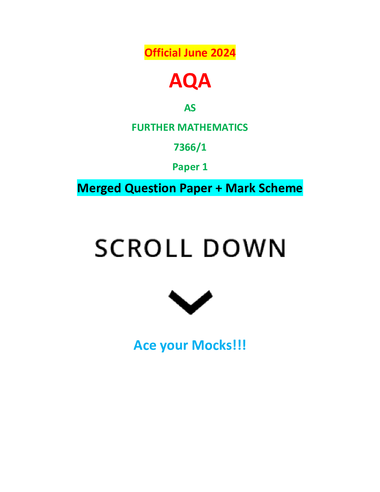 AQA > AQA > Official June 2024 AQA AS FURTHER MATHEMATICS 7366/1 Paper 1 Merged Question Paper + Mark Scheme (All)