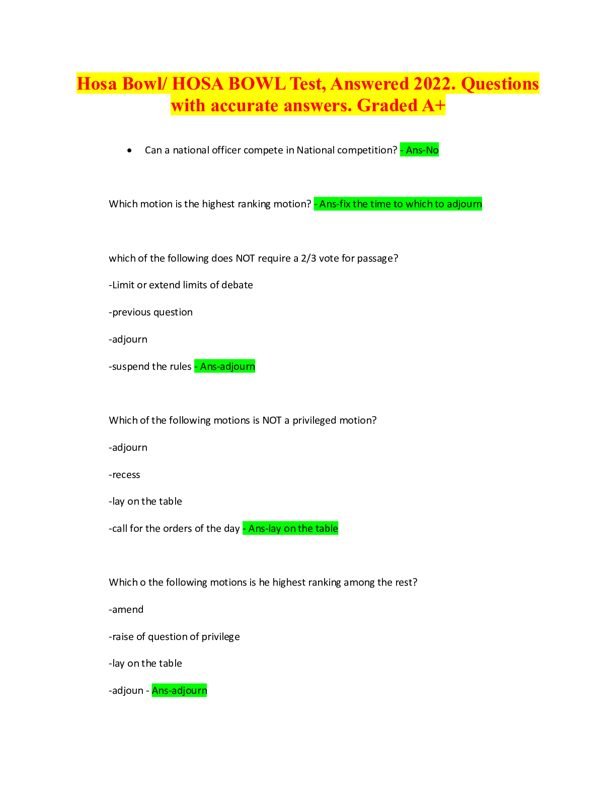Political Science > QUESTIONS & ANSWERS > Hosa Bowl/ HOSA BOWL Test, Answered 2022. Questions with accurate answers. Graded A+ (All)