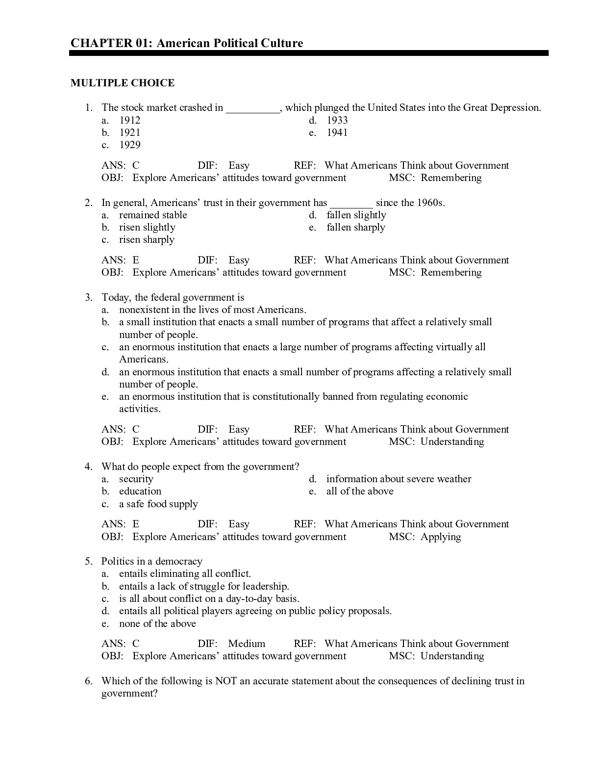 Political Science > TEST BANKS > TEST BANK for Understanding the Political World 13th Edition A Comparative Introduction to Political Science by James Danziger; Lindsey Lupo. (All 15 Chapters) (All)