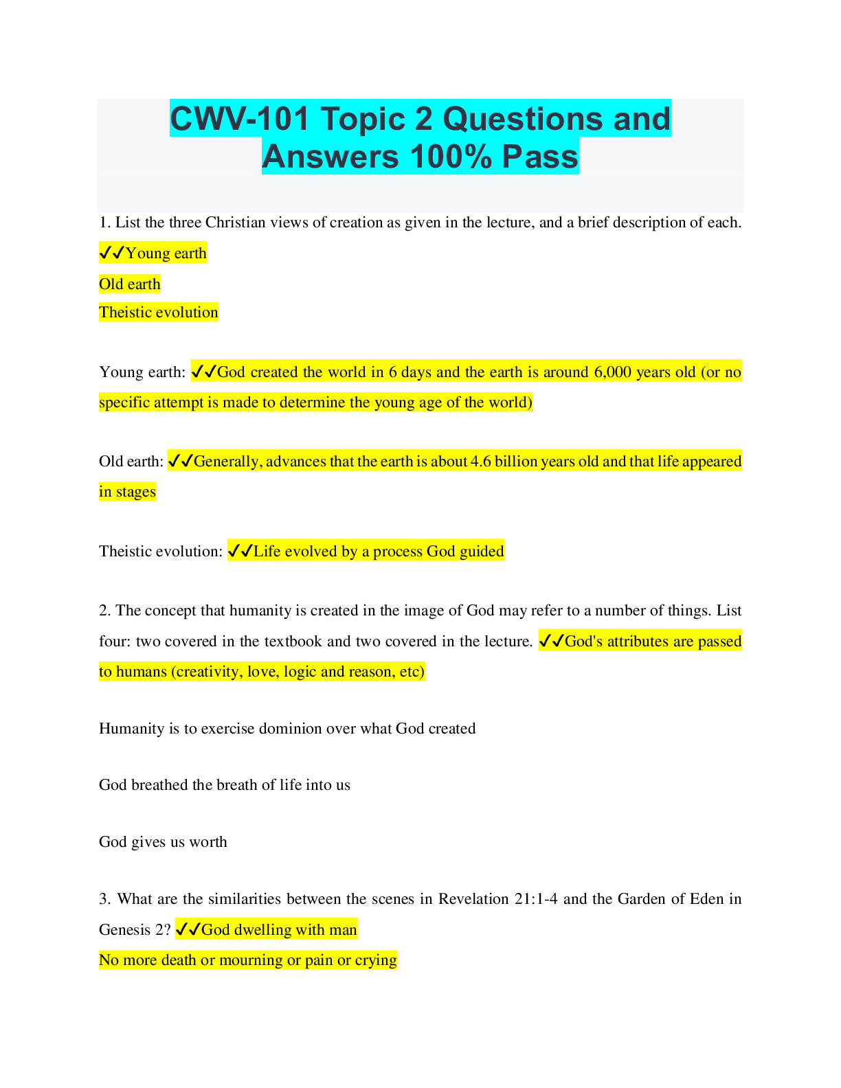 Religious Studies > QUESTIONS & ANSWERS > CWV 101 Final Exam Questions and Answers Already Passed (All)