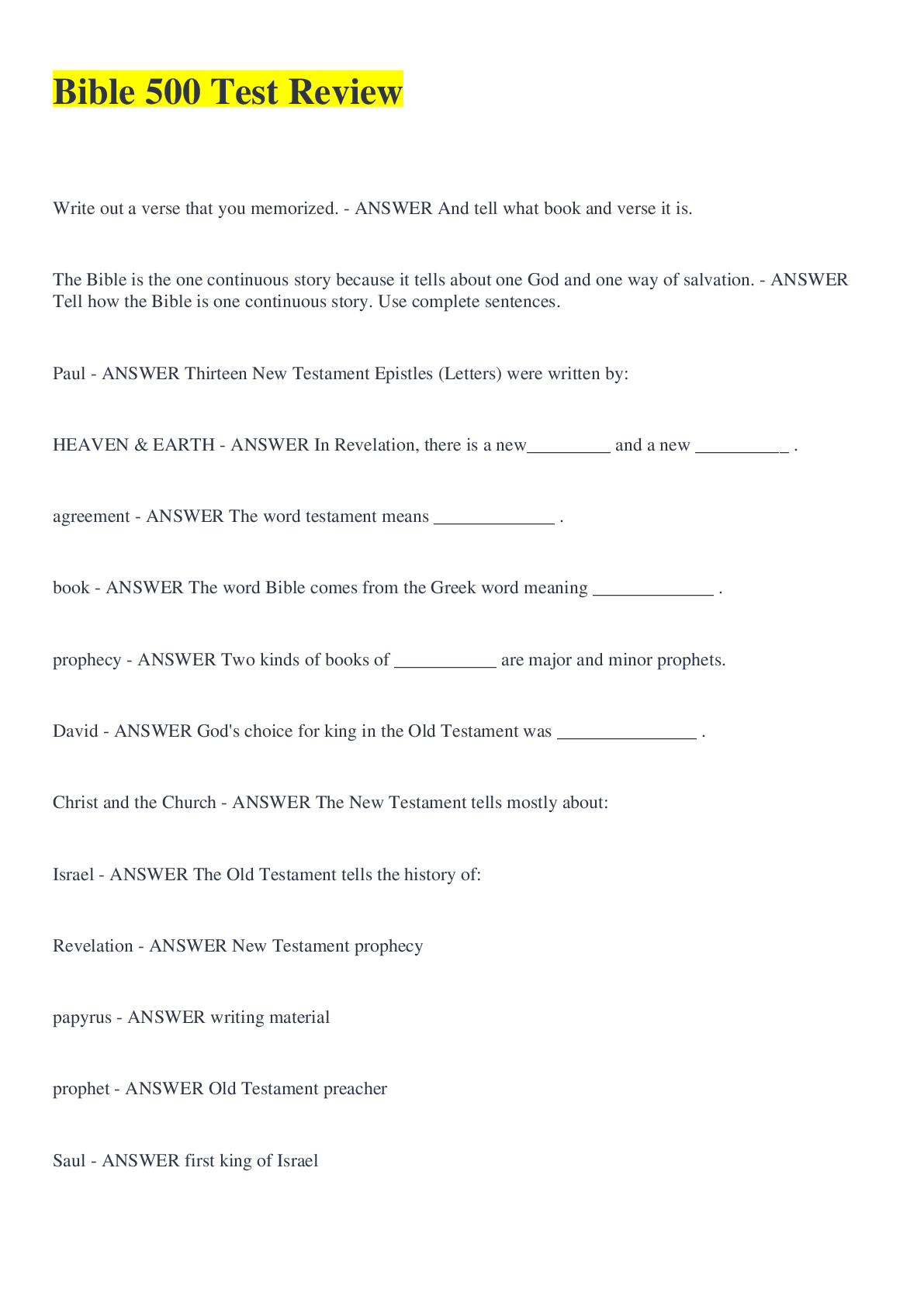 Religious Studies > EXAM > BIB 106 EXAM 2 Encountering the Old Testament CHAPTERS 10-15 and 19-23 (All)