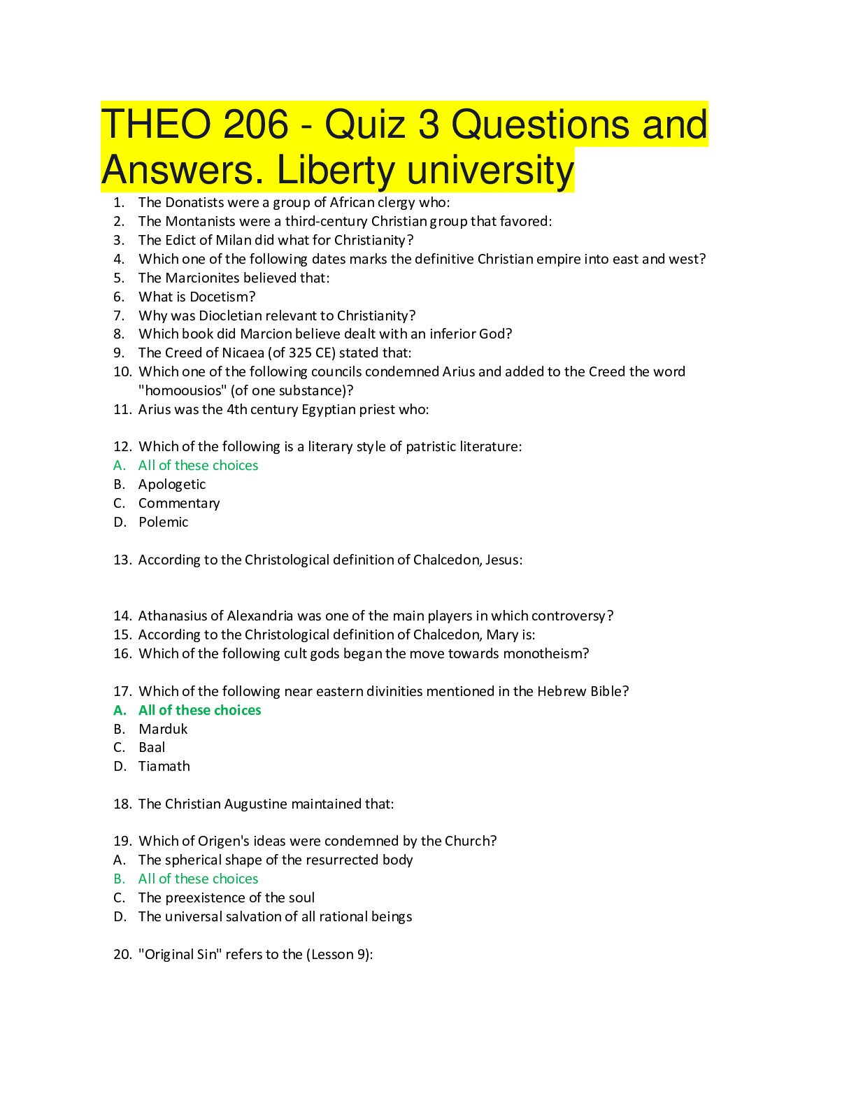 Religious Studies > QUESTIONS & ANSWERS > THEO 206 - Quiz 3 Questions and Answers. Liberty university (All)
