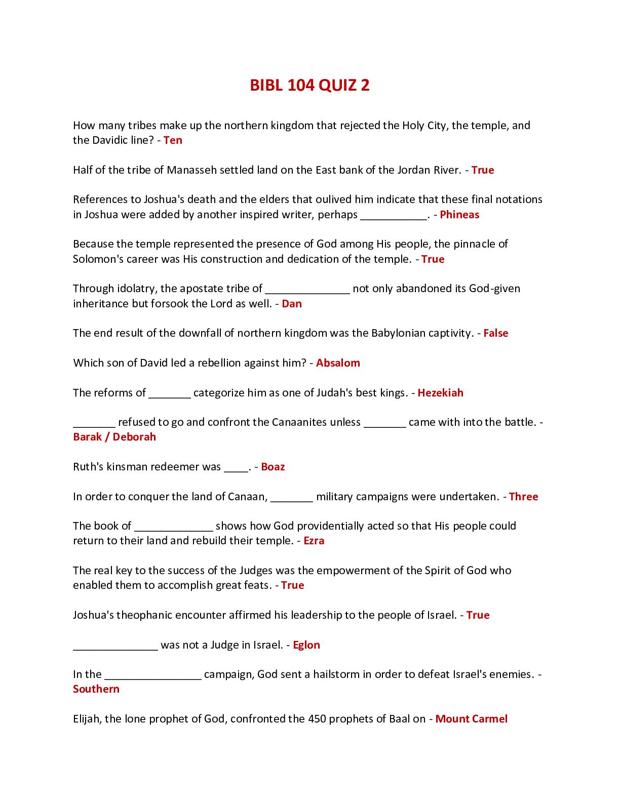 Religious Studies > EXAM > BIBL 104 QUIZ 2 - QUESTIONS AND ANSWERS (LIBERTY UNIVERSITY) (All)