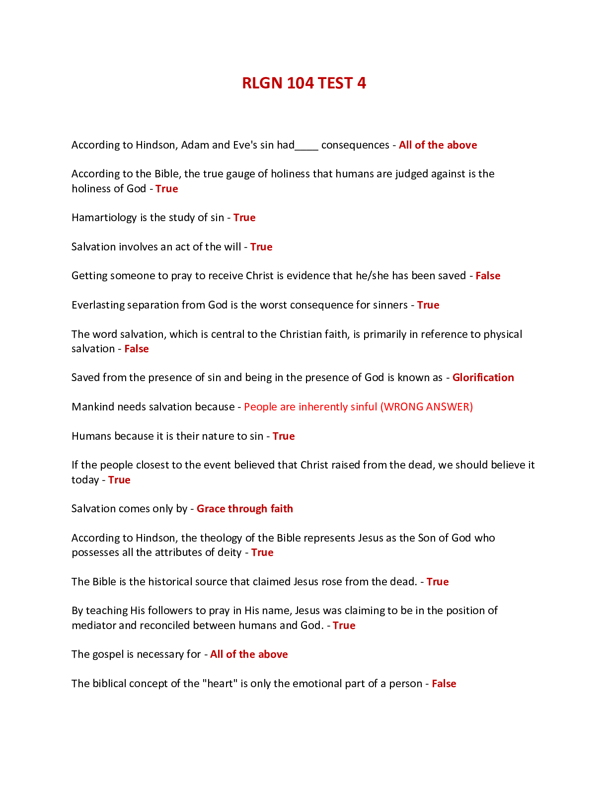 Religious Studies > EXAM > RELIGION 104 / RLGN 104 TEST 4 - LIBERTY UNIVERSITY (All)