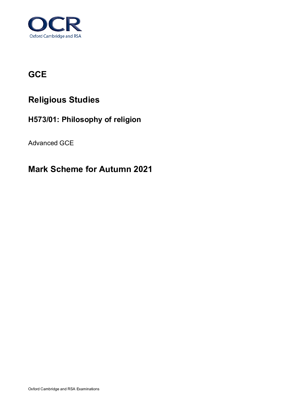 Religious Studies > A/As Level Mark Scheme > A Level Religious Studies _H573/01 Mark Scheme Oct 2021 | Philosophy of Religion (All)