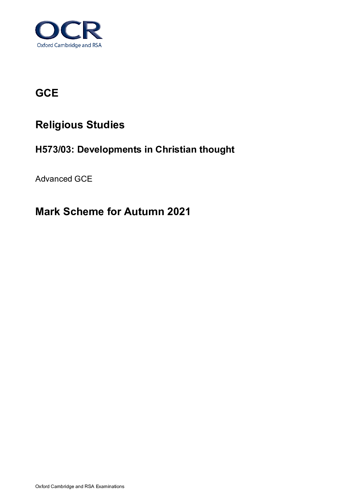 Religious Studies > A/As Level Mark Scheme > >_A Level Religious Studies _H573/03 Mark Scheme Oct 2021 | Developments in Christian Thought (All)