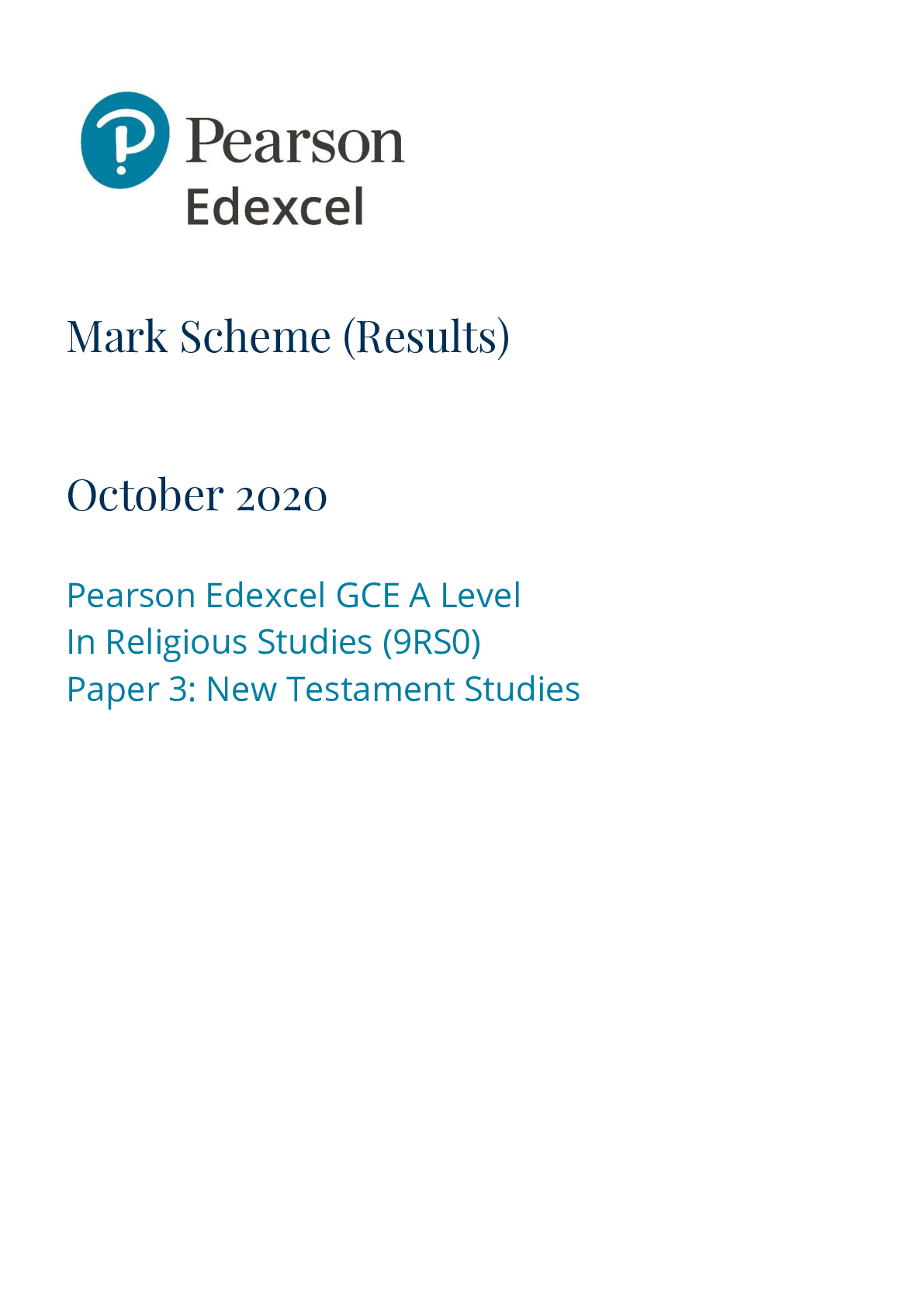 Religious Studies > Edexcel > Pearson Edexcel_Religious Studies_9RS0/03 Mark Scheme_2020 | Paper 3: New Testament Studies (All)